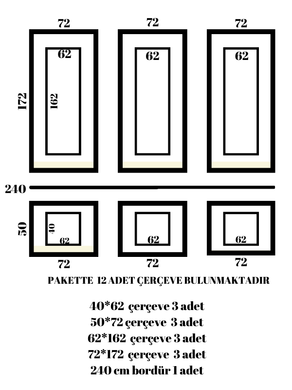 SEPETTEBİZ HAZIR KESİMLİ PAKET Model : 2,5 cm Boyanabilir Duvar Çıtası Modellerimiz Duvar,Tavan,Mobilya,Kapı,Ayna,Pano çerçeve vb.gibi Alanlarda Kullanılmaktadır. ; Çıta Montajı Kolay ve Temiz Bir Şekilde Uygulanmaktadır. ; HAZIR PAKET İÇERİĞİ :2,5 cm boyanabilir çıta kullanılarak yapılmış olan bu setimiz hazır kesim olup set halinde gönderilmektedir.Herhangi bir kesime ihtiyaç duymadan kolayca silikon yardımı ile montaj yapabileceğiniz hazır paket bir ürün haline getirmiş bulunuyoruz. ; Ürünlerimiz suya ve darbeye dayanıklıdır. ; Hazır paket ölçüler şablonda belirtilmiştir.;